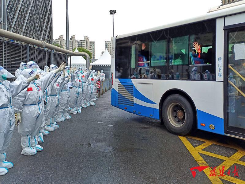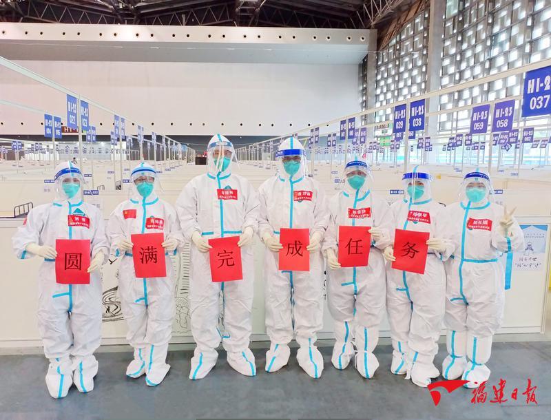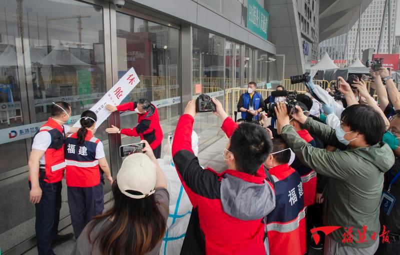 25日上午,伴随着全场热烈的掌声,上海世博展览馆方舱医院正式休舱。方舱外的广场上,身着写有“福建”两个大字“战甲”的福建援沪医疗队队员们,圆满完成中央和省委省政府交给的艰巨任务。