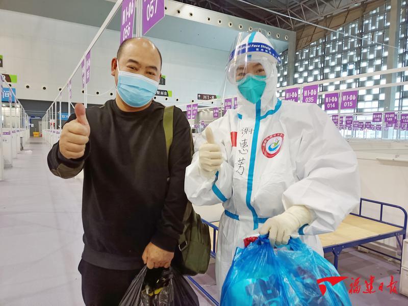 在世博方舱奋战46天,队员们既有激动,也有不舍。休舱前一天,医疗队队员许能銮特地丈量了方舱。“H1舱区,大约有4个足球场那么大!一眼望去,白茫茫的一片。在里面工作的难度,没有亲身经历是无法想象的。”他说,四十多天来,大家在党组织的引领下,齐心协力干好每一件事,谁都不喊苦不喊累。经过这次磨炼,大家将把更坚强的斗志、更好的工作方法带回福建,服务好家乡人民。